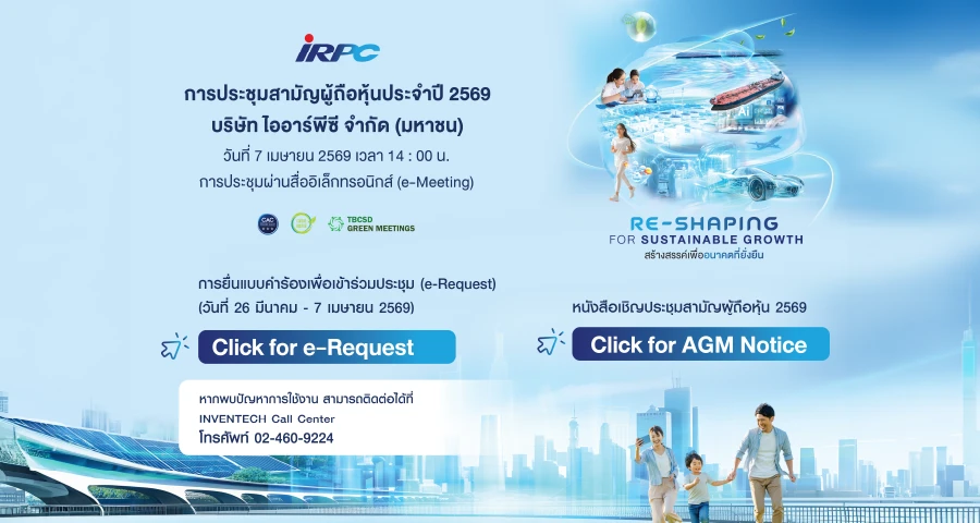 การเผยแพร่หนังสือเชิญประชุมสามัญผู้ถือหุ้นประจำปี 2569 และแบบแสดงรายการข้อมูลประจำปี/รายงานประจำปี (แบบ 56-1 One Report) บนเว็บไซต์ของบริษัท ไออาร์พีซี จำกัด (มหาชน)